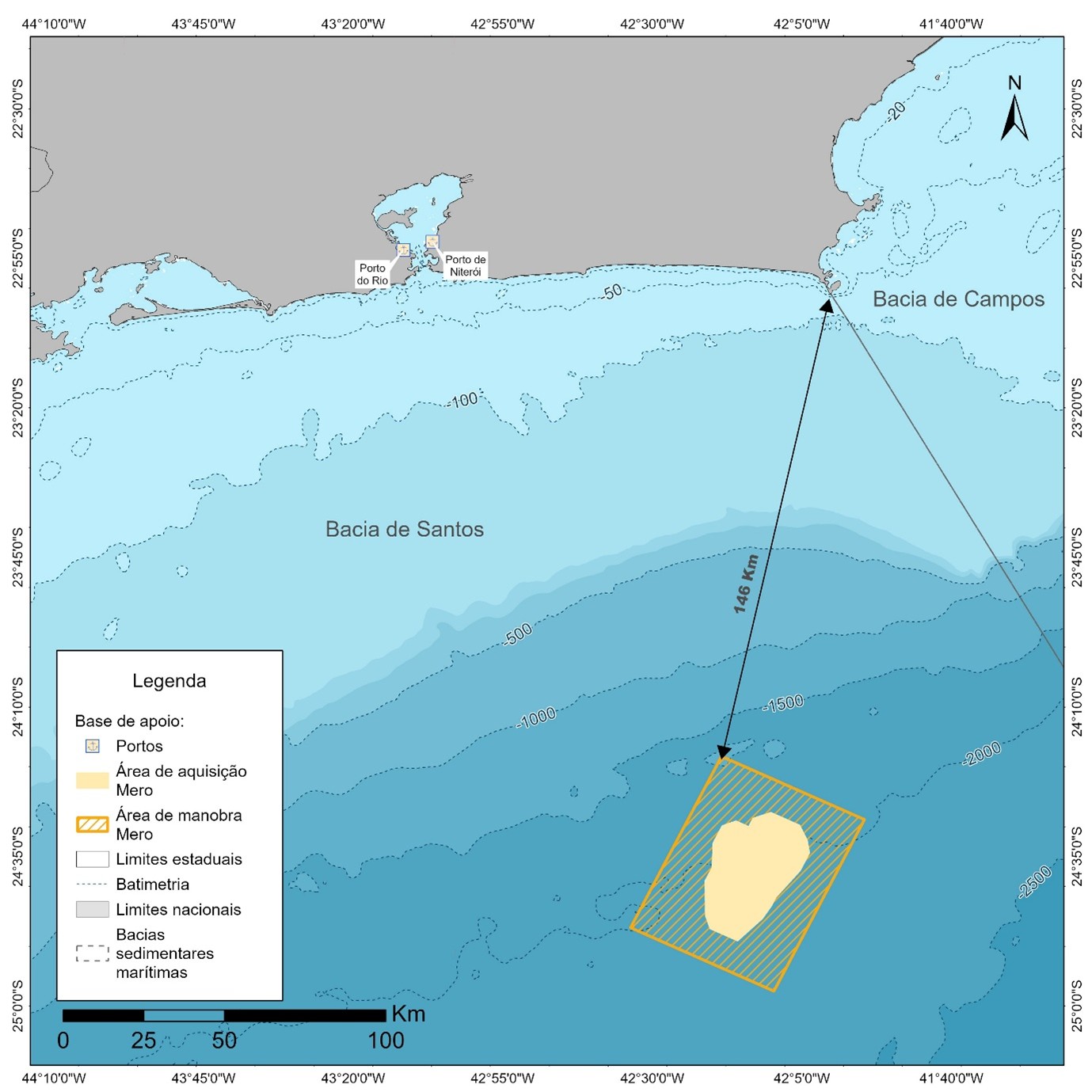 A Atividade de Pesquisa Sísmica Marítima nos Campos de Mero, localizada na Bacia de Santos, a cerca de 146 quilômetros da costa de Arraial do Cabo/RJ a mais de 1.500 m de profundidade está prevista para iniciar em fevereiro de 2026, realizada pelas empresas Saexploration Brasil Serviços Sísmicos e PXGeo do Brasil LTDA.