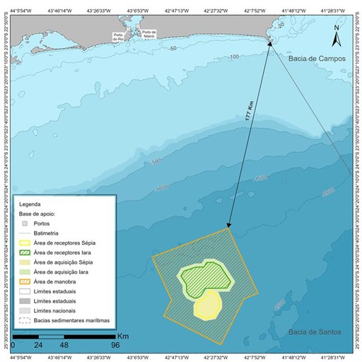 A Atividade de Pesquisa Sísmica Marítima nos Campos de Sépia e Iara, localizada na Bacia de Santos, a cerca de 177 quilômetros da costa de Arraial do Cabo/RJ a mais de 2.250 m de profundidade, foram realizadas respectivamente entre janeiro e junho de 2024 e maio e dezembro de 2023. Sua fase monitora está prevista para iniciar em fevereiro de 2026, realizada pela empresa PXGeo do Brasil LTDA.