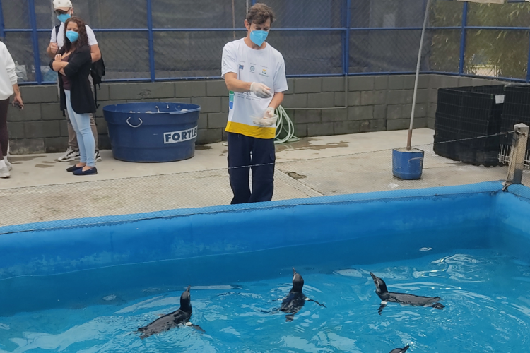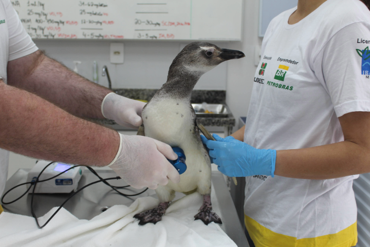 A atividade inclui observar os animais com o objetivo de detectar possíveis alterações físicas ou comportamentais, permitindo identificar sinais de melhora ou de atenção. “Verificamos se o animal está se alimentando corretamente, se está ganhando peso, se apresenta ferimentos ou algum comportamento fora do habitual. No caso dos pinguins, por exemplo, é importante observar se o animal está com dificuldade de se manter na superfície da água, o que pode indicar pouca impermeabilização das penas”, conta Vanessa Souza, da R3 Animal Trecho 3.