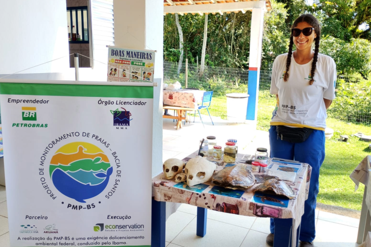 Com sensibilidade e técnica, os profissionais que atuam no Projeto de Monitoramento de Praias da Bacia de Santos (PMP-BS) realizam atividades de educação e transformam temas complexos em aprendizados acessíveis e práticos. “Apresentamos com detalhes o funcionamento do nosso projeto e o destino dos animais resgatados. Explicamos o objetivo do PMP, as espécies que compõem nossa fauna alvo e as formas de entrarem em contato conosco. Durante as atividades de educação ambiental sempre envolvemos os turistas e comerciantes que estão próximos e reforçamos a importância dessa comunicação entre nossa equipe e a comunidade local”, conta a bióloga Vitória Lopes, coordenadora de Trecho no Rio de Janeiro, da empresa contratada Econservation.