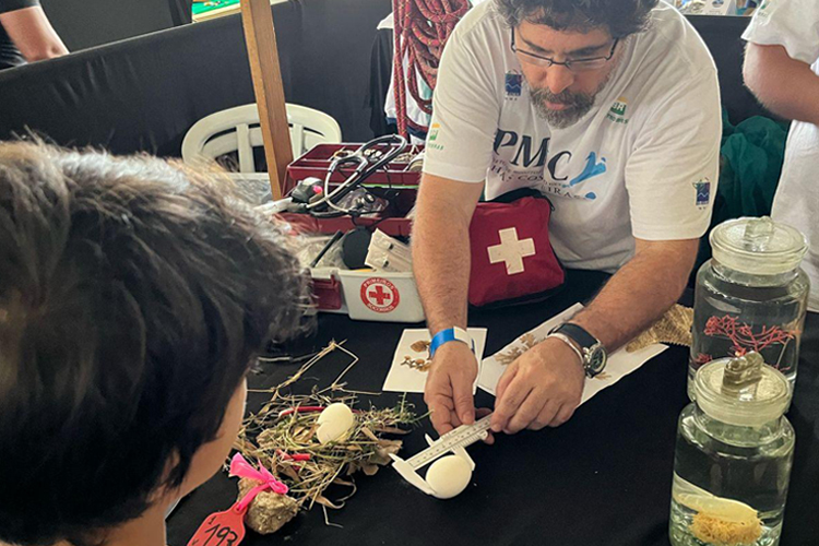 As crianças ainda participaram de oficinas de pintura e, de forma lúdica, simularam o trabalho de campo do PMIC, medindo ovos com paquímetro e preenchendo fichas de aves. Um manequim com o equipamento de mergulho utilizado pela equipe de pesquisa também foi exibido, despertando a curiosidade dos visitantes.